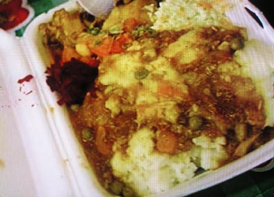 詠美さんが注文したのは、チキンシチューウィズポップと呼ばれる物。味はアメリカ南部のグリッツのようなものだとか。